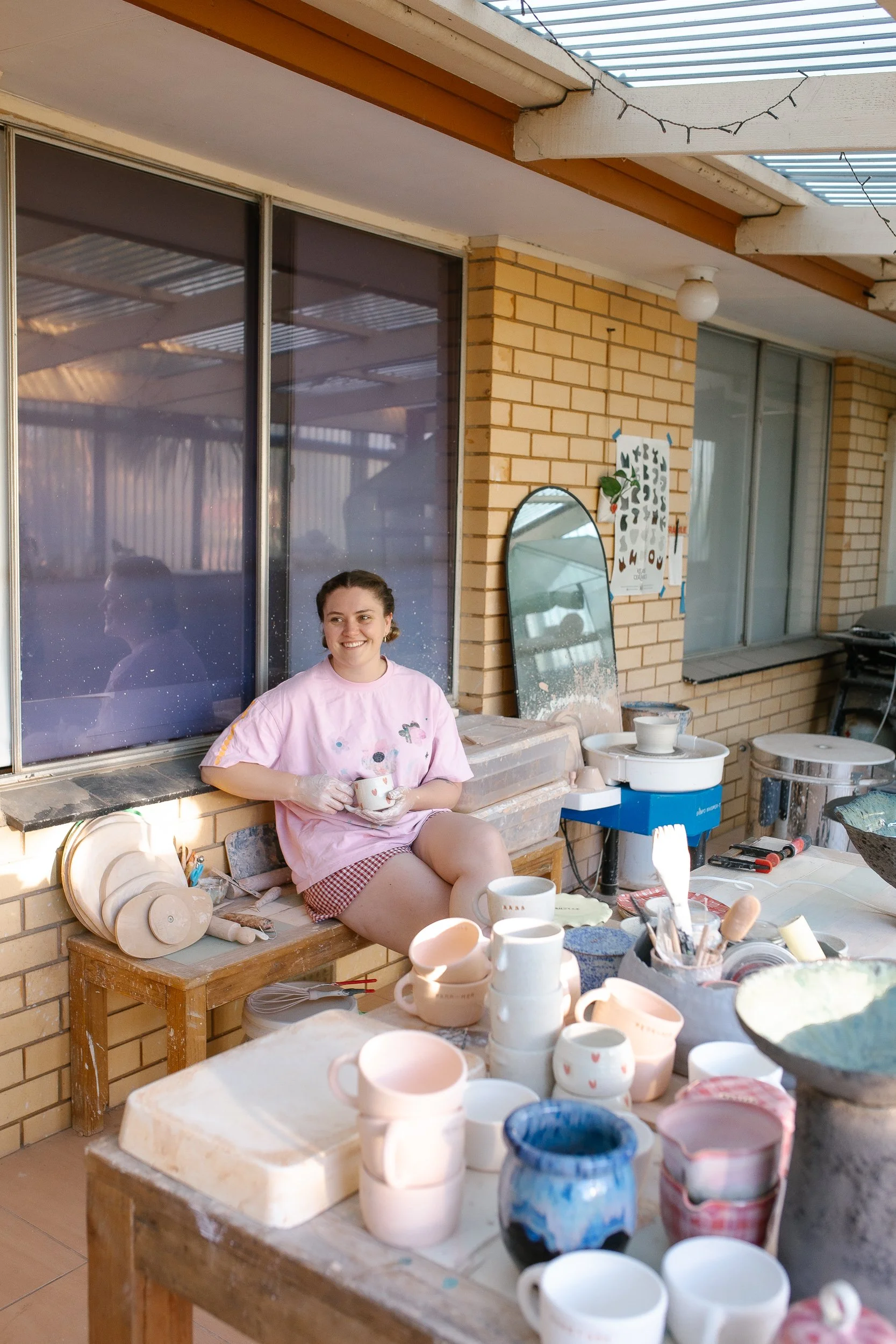 You’ll find lots of cups and mugs on the studio shelves, as well as trinkets, tableware, and my favourite: the bell-style lidded butter dishes. Alongside these functional, playful wares I create custom pieces that romanticise heirlooms and honour life’s milestones. If you’re interested in having a custom heirloom made in honour of a milestone, memory, or someone special I’d love to chat. Get in touch about custom heirloom-style pieces here.